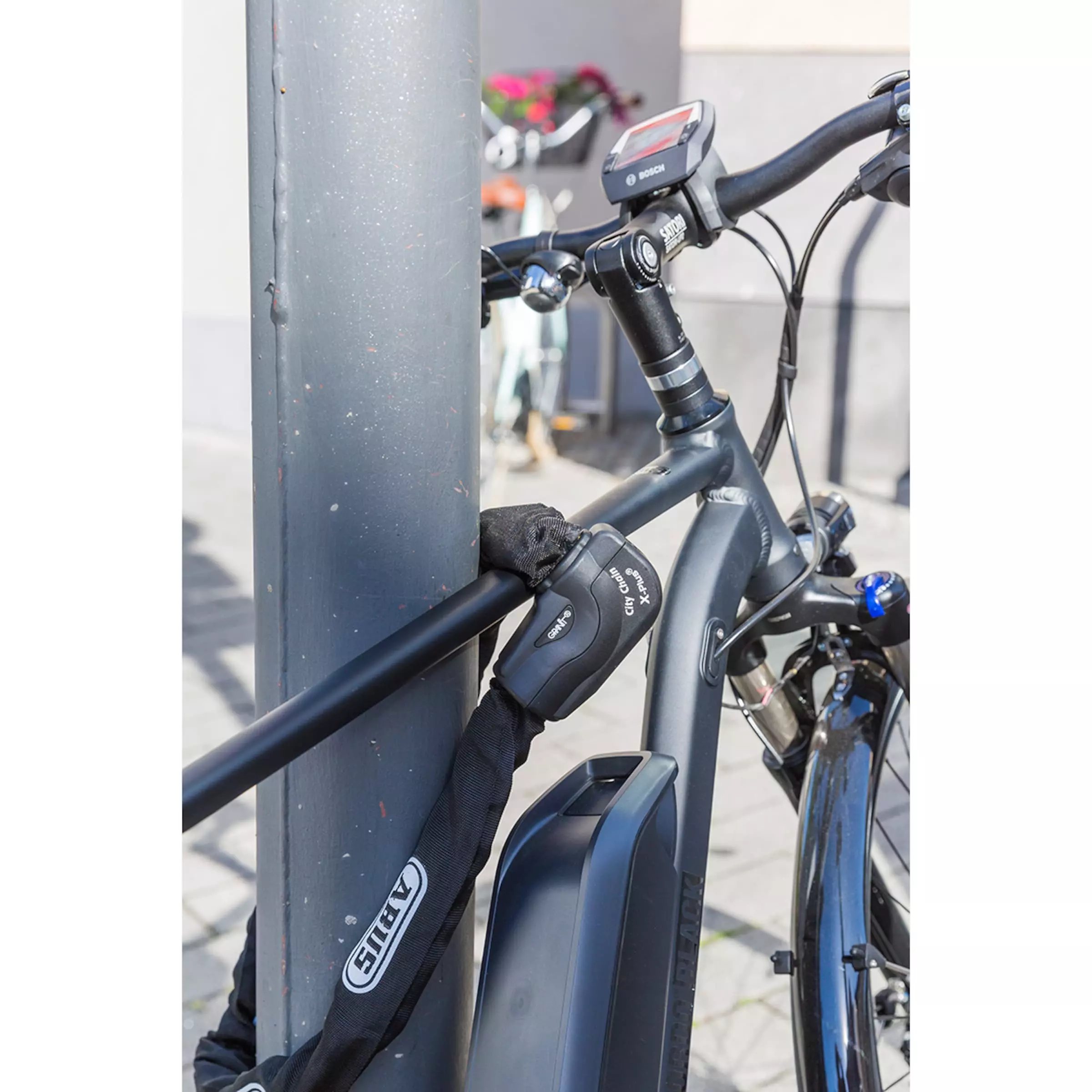 With a high level of anti-theft protection and a feeling of safety, the chain lock ABUS Granit CityChain X-Plus 1060 really lives up to its name. This is ensured by the 10 mm thick hexagonal chain that can even handle intense attacks from thieves. In addition to the chain, which is available in three lengths, the ABUS X lock is also made to scare off thieves. The chain is secured in the lock housing and thieves trying to pick this solid lock don’t stand a chance. So it’s no wonder that the chain lock has the best possible ABUS security level of 15 and will give thieves the hardest time ever – considering this lock is really tough as granite.