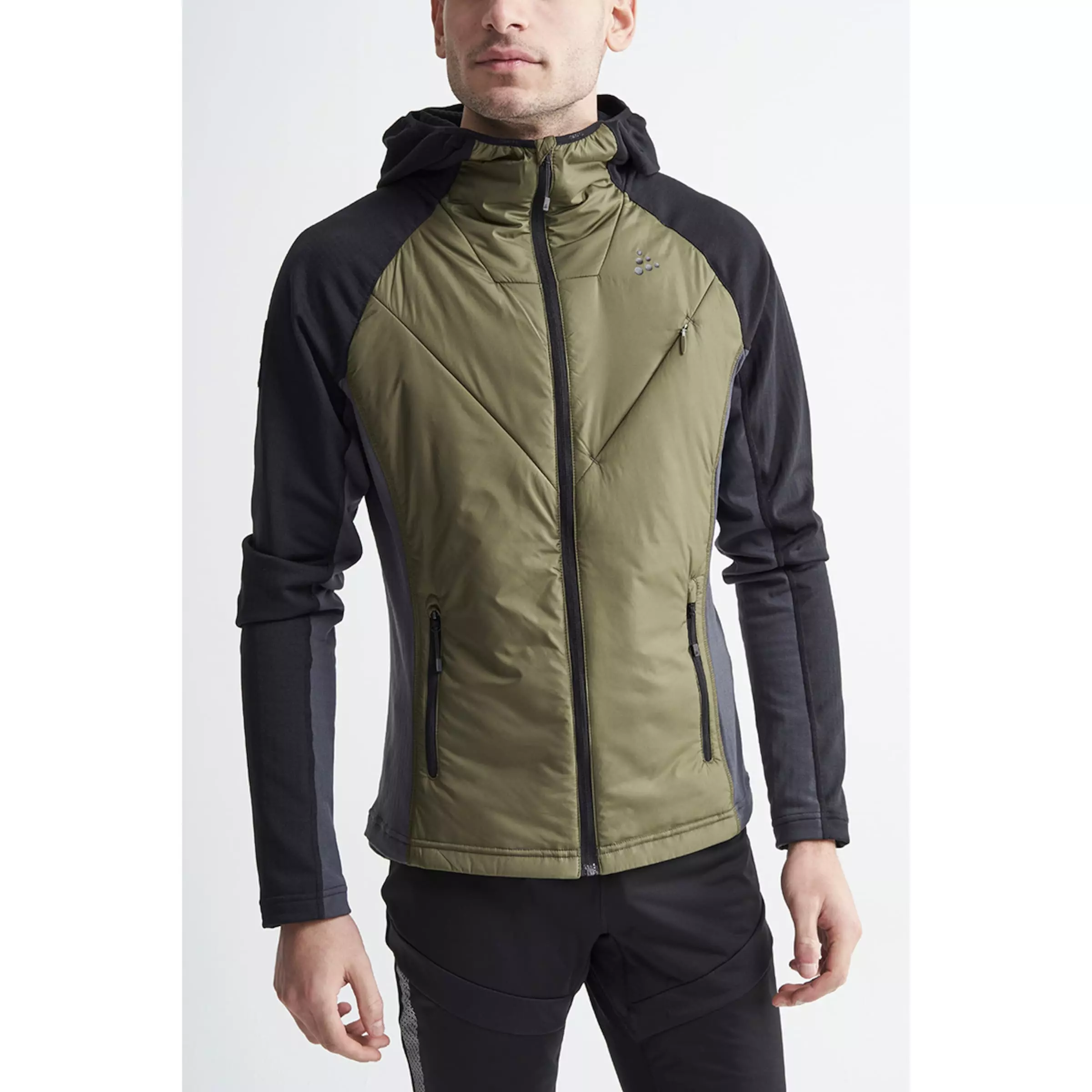 The POLAR LT PD MIDLAYER M jacket by CRAFT is a warm, hooded mid-layer jacket with a thin insulation, a full-length zip, a chest pocket and two zipped side pocket. Perfect for riding on colder days!