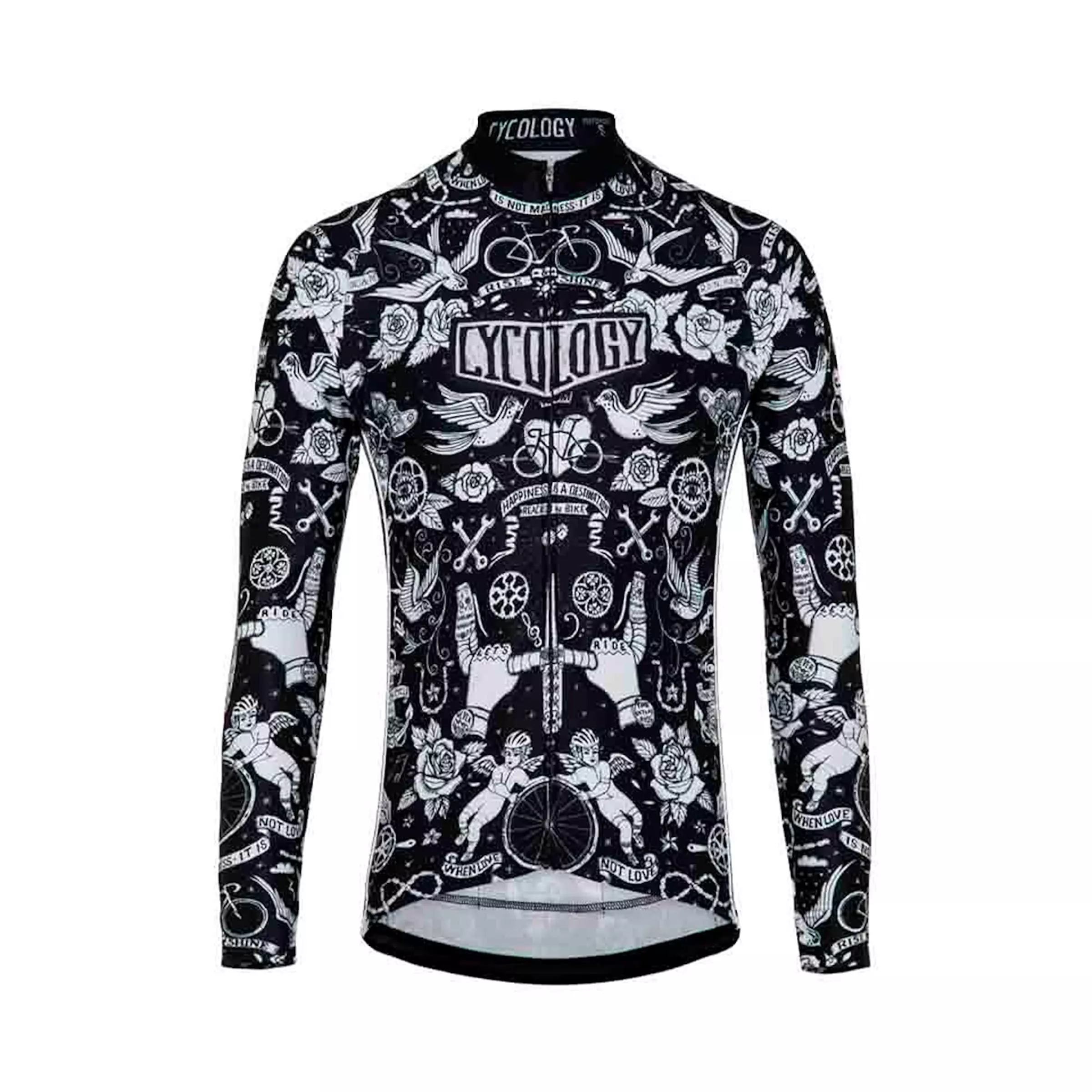 The stylish VELO TATTOO MEN’S LONG SLEEVE JERSEY by CYCOLOGY is perfect for winter cycling. Get yourself this thermal jersey with a warm fleece lining!