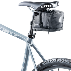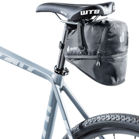 deuter’s BIKE BAG 1.1 + 0.3 saddle bag not only has a volume of no less than 1.1 litres, but it can also be enlarged by another 0.3 litres using the expansion bellows. This way, you can take along everything you might need on your tour, ranging from a spare tube through to an energy bar.
