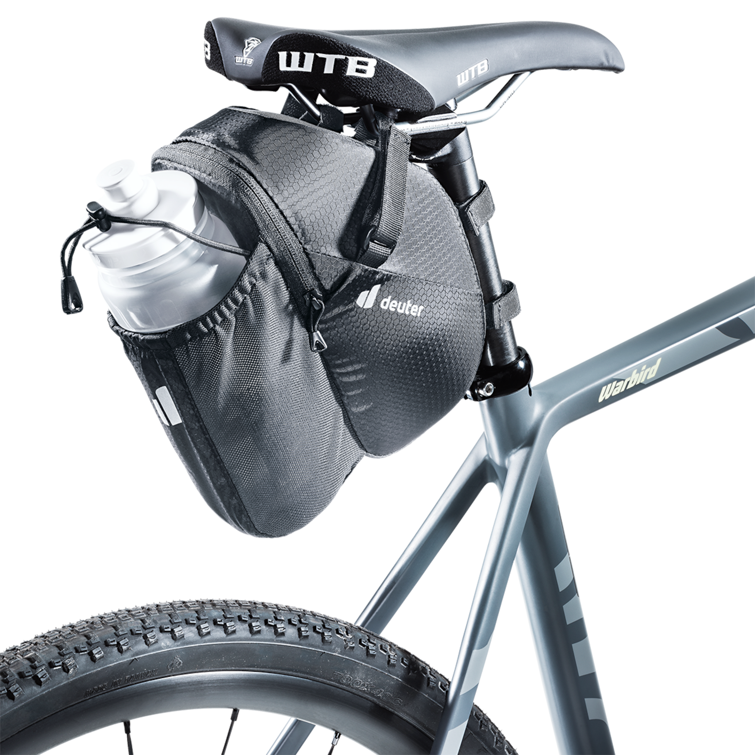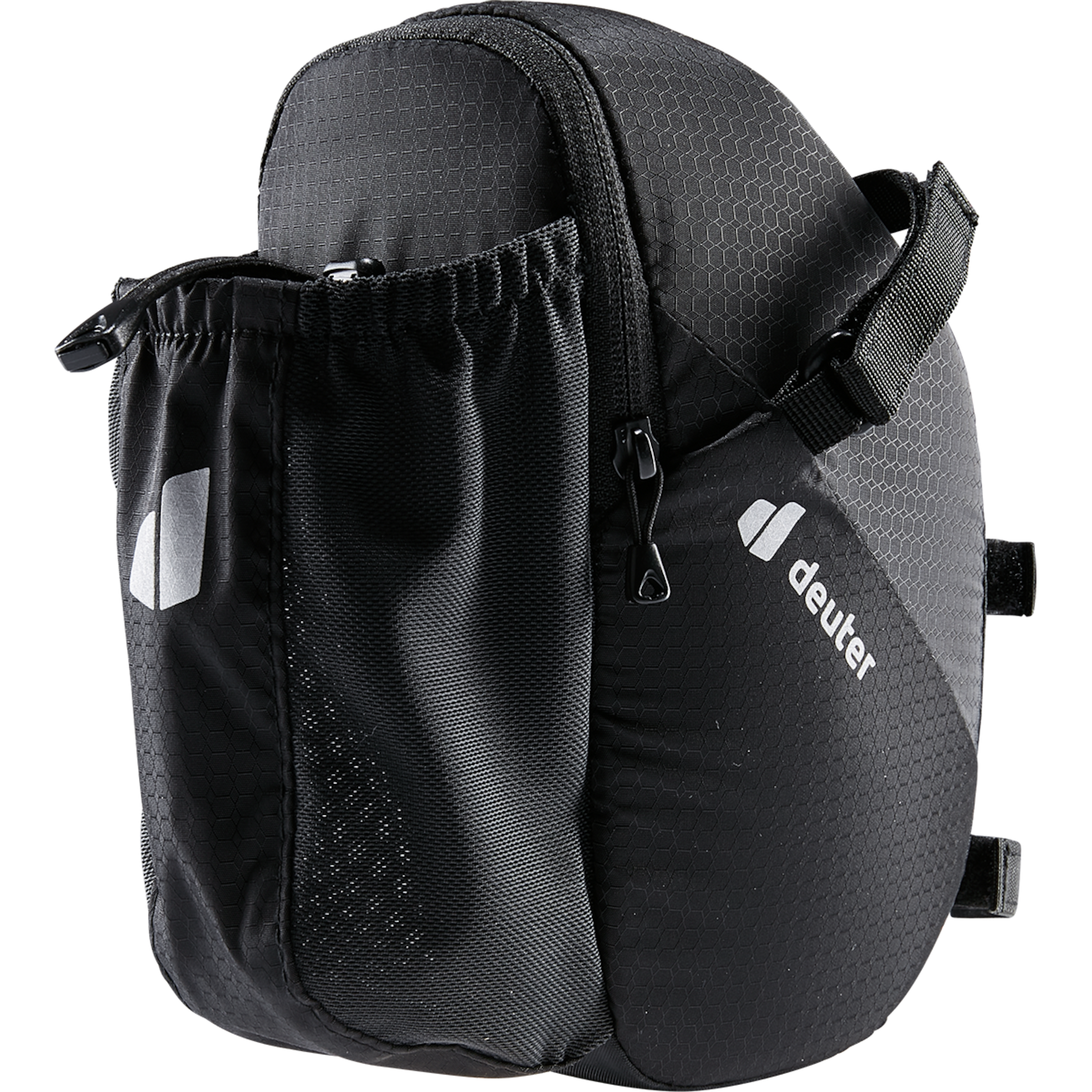 Saddle bag and bottle cage in one: deuter’s BIKE BAG 1.2 BOTTLE for the seat post not only offers enough storage space for spare tube, keys and tools, but it also allows you to transport a water bottle inside the side compartment. Simply practical!