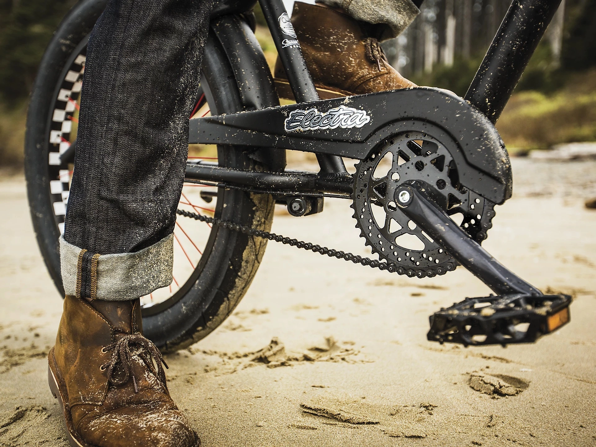 Straight 8 menee suoraan asiaan. Tämä täysin matta musta Cruiseri on yksi Electran suosituimmista Attitude Cruiser -pyöristä. Punaiset pinnat, shakkiruutukuvioinen takavanne ja kustomoidut 8-pallo-venttiilikorkit kääntävät takuulla katseet missä tahansa liikutkaan. Hydroform-muotoiltu alumiinirunko, patentoidun Flat Foot Technology® runkogeometrian tuoma rento ajoasento ja Fatti-O-renkaat. Straight 8 tarjoaa rennon ja mukavan kyydin, joka tuntuu yhtä tyylikkäältä kuin näyttääkin.