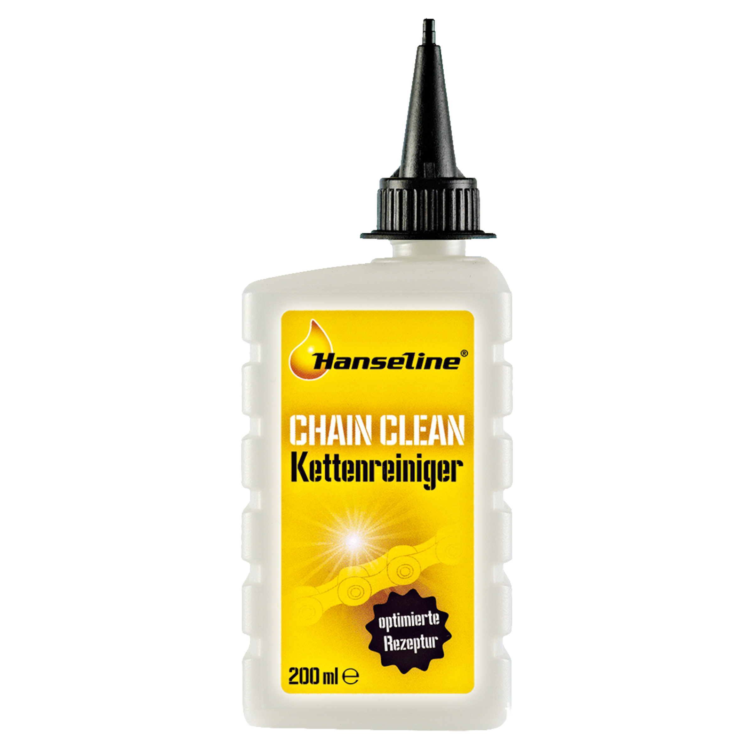 Like a feel-good bath for your bicycle chain! The Hanseline Chain Clean product removes dirt fast and effectively. Simply apply it, leave it to react and then use a cleaning brush to remove dust and dirt. Wipe the chain off with a cloth afterwards and it will shine like new again. The lipid-replenishing chain cleaner can also be used together with a chain cleaning device (e.g. Xtreme Caretec chain cleaning device, prod. code: 492104). For a lasting protection of your chain, we recommend a subsequent lubricating with Hanseline chain oil (prod. code: 2274411).