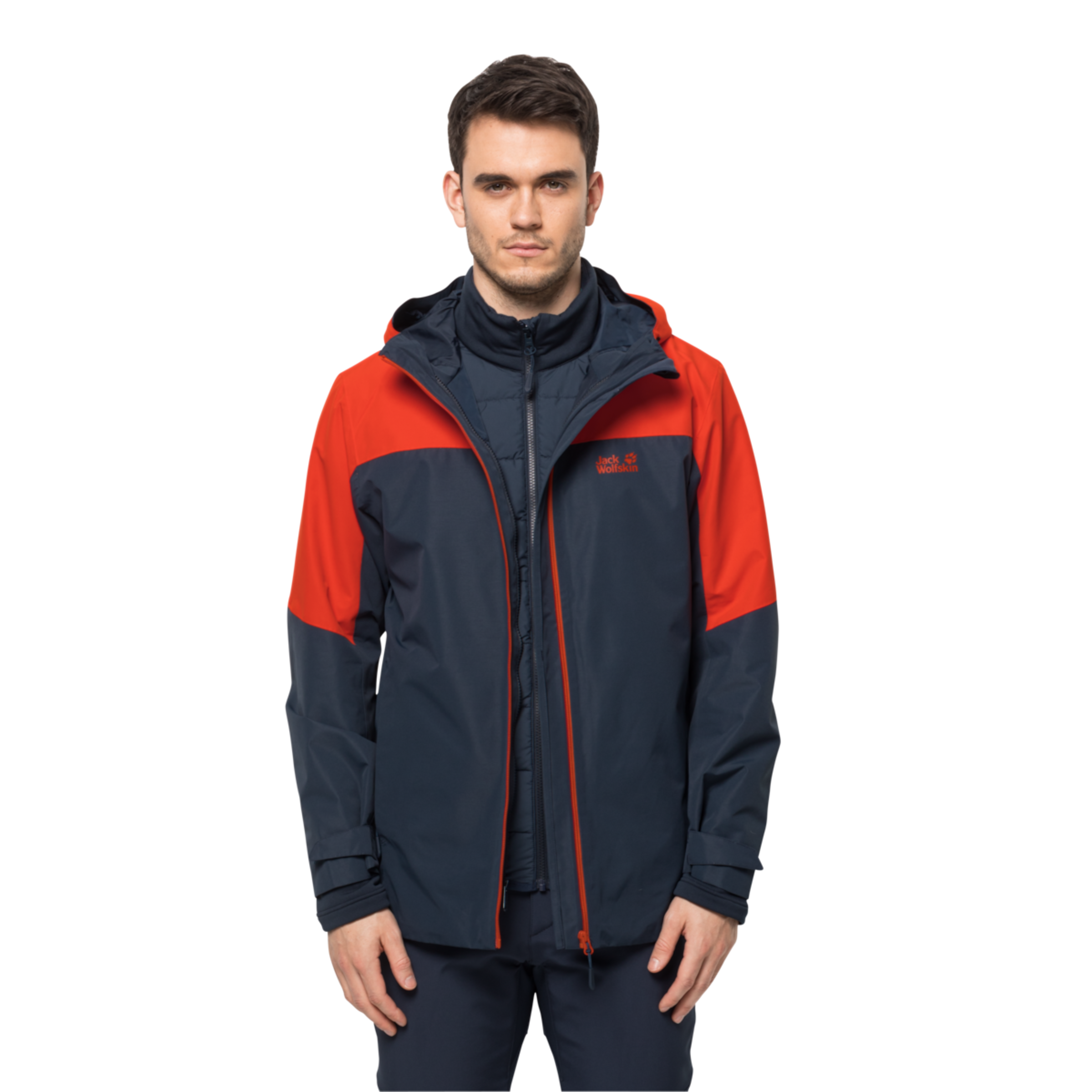 • Wind- and waterproof 3in1 outdoor jacket for men with removable inner jacket and REGULAR SYSTEM ZIP