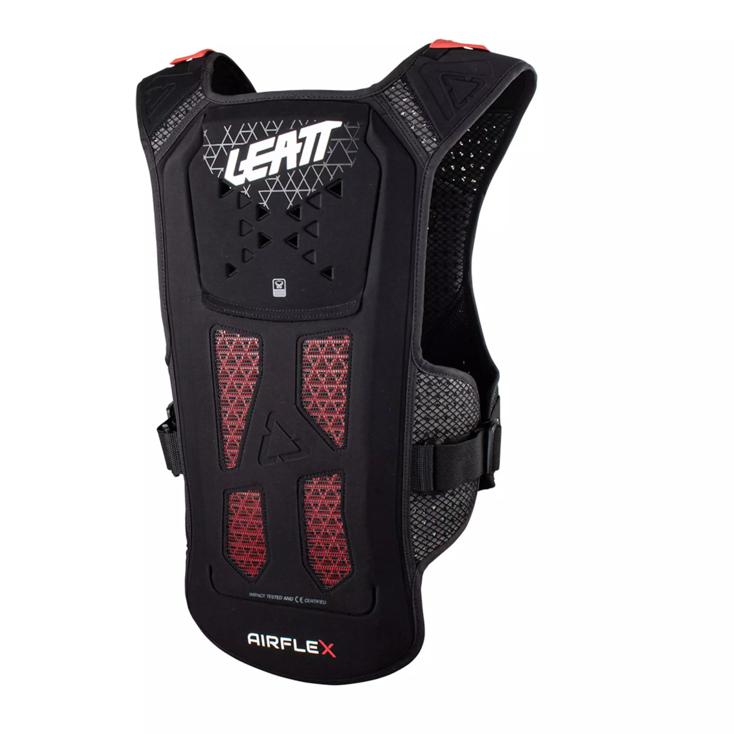 The AIRFLEX CHEST PROTECTOR from LEATT is an upper body protector that, thanks to its AirFlex technology, is not only lightweight and well-ventilated, but also very thin, without compromising on protection. The AirFlex offers you many advantages: it deforms ergonomically and thus hugs the body in a barely noticeable way. Thanks to the soft and thin material it stays extremely flexible while you move and follows your every movement. If you crash, the material distributes the impact forces and absorbs the impact energy. The protector vest is perfect for warmer days.