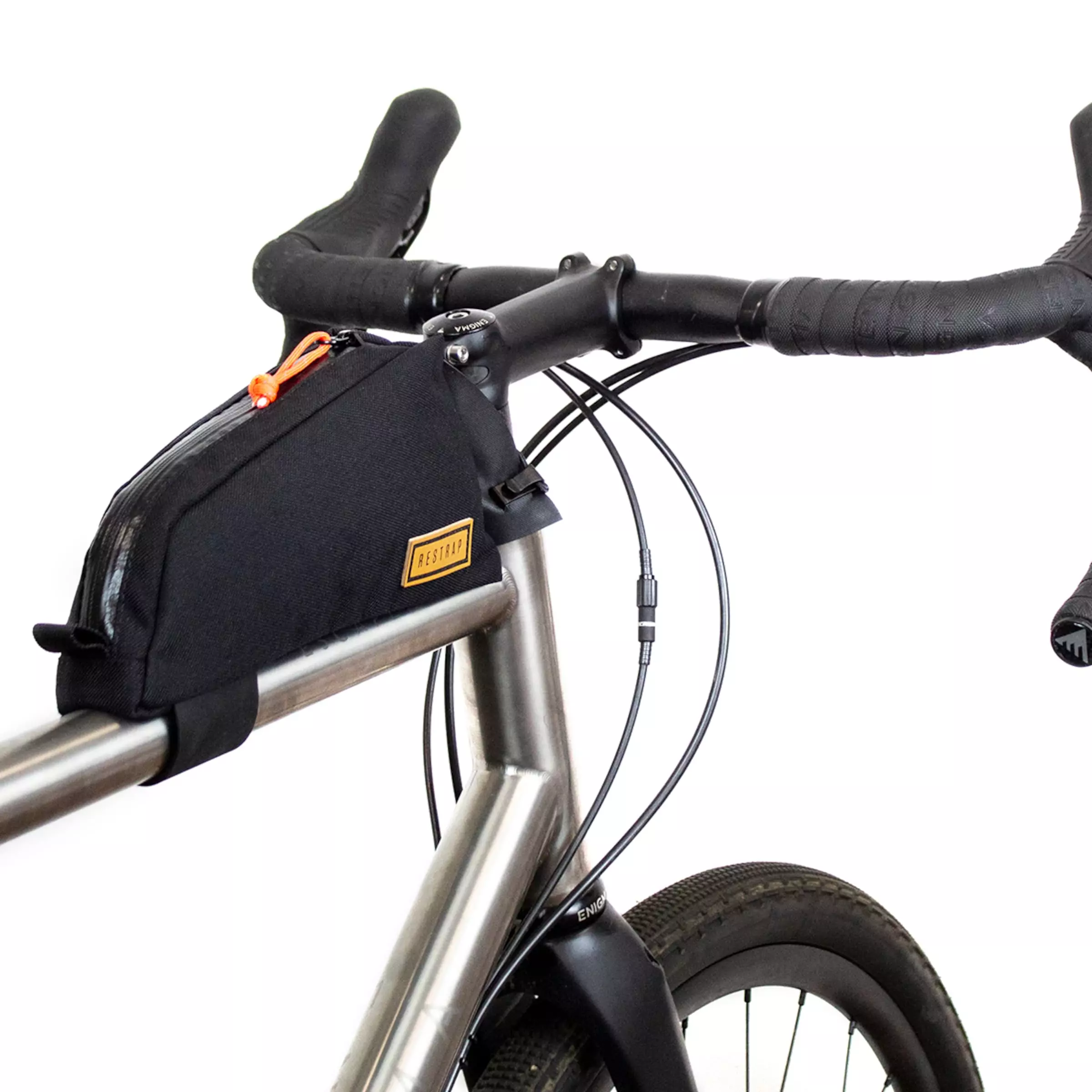 The TOP TUBE BAG from RESTRAP is the practical bag for cockpit mounting. The front side has a sophisticated system of Velcro straps, with which you can easily secure it to the cockpit. Discover the waterproof bike bag made of robust Cordura material.